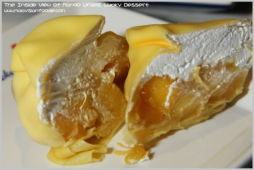 Mango Wrapz(芒果班戟) is something special which I can judge from the look. From the look I am expecting the durian wrapz more. The wrapping is alike a big wantan where the mango is well wrapped with the golden yellow thin skin. Inside it, you can see the thick slices of the mango and fresh cream in it. The fresh cream is not sweet and it suits old and young.