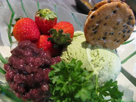 Other than that, i was temptating of haven desserts and something special.. where i saw people ordering due to the look of it.. so i ordered their Green Tea Ice Cream, served aside with the overwhelming red beans, and adorned with strawberries plus a creamed cookie! An exquisite preparation priced at RM16.
