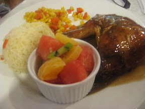Here comes HY set. is 1/4 chicken wif the side lines.. rice, fruits and corns.. and the chicken is drumstick.. original taste..