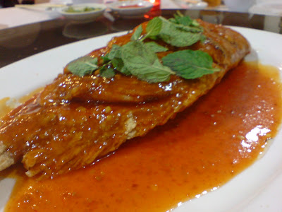 Nyonya Sauce Fish- this is where the fish is cooked with some sweet and sour chilies and is a bit hot .. but consider nice.. Jus pity the fish is not that fresh lo