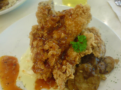 Next come mine set of BBQ fried chicken. The set comes with the chicken that are being fried and is drumstick and they pour the bbq sauce on it. And the taste is incredible nice. It has the taste of the BBQ sauce.. as well as the chicken was crispy fried.. in hot oil. Haha.Then they serve with potatos below.. and the taste is really delighting but kinda a heavy lunch for me. Mine is RM 13.90