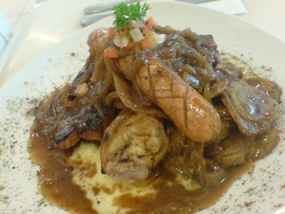 The menu price range is from RM 13.50 to RM 18.00.. and is kinda reasonable. The set comes with a soup, a main dish and a cup of drink. They have many choices from fish, chicken as well as lamb. The restaurant chef told us they don serve beef… and the service is extremely good and the very friendly. He explained the meals well to us. I order BBQ fried chicken while HP ordered a special dish which have the combination of many choices. Firstly, they serve us with our drinks which is the chrysanthemum tea. Then comes the soup. The mushroom soup and the presentation is very nice. The soup is not very creamy compared to the one I had in temptation last time. As I am also not much a soup lover.. haha. The soup have not much of creamy taste and the taste of the mushroom is also very nice and good. Credits for the chef.. oishi desu… Rate it 4/5