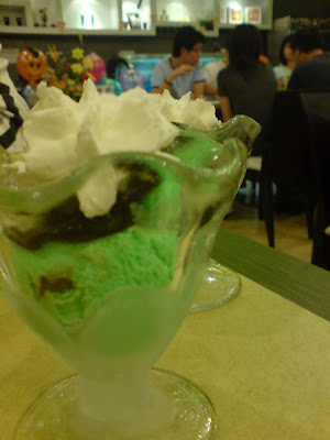 HP ordered fish.. but I also dono how to describe.. looks oishi.. he commented oishi.. haha.. looking at it the portion not as heavy as mine. Haha.. he say is nice and everything is oishi.. so since den.. it will 5/5 for the food la. ..the ice cream is nice… peppermint..hehhe.. I love it very much… very cooling