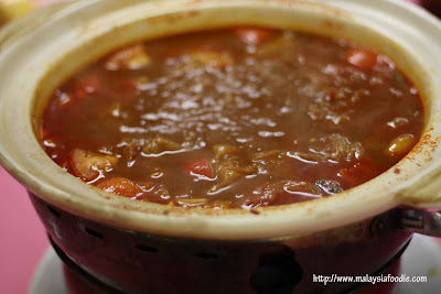 The meal arrived not that fast .. but still consider is waiting time list since there is a number of customers. They help us to setup the steamboat set and we had them readily setup. Then comes the big bowl pot of soup which i don expect it should so so big bowl… and was shocked looking at the big bowl of tomyam soup. The soup is not the same as those steamboat restaurant which they served with the tomyam paste but the tom yam here is brewed by its own.. and the taste is really different and a bit spicy.