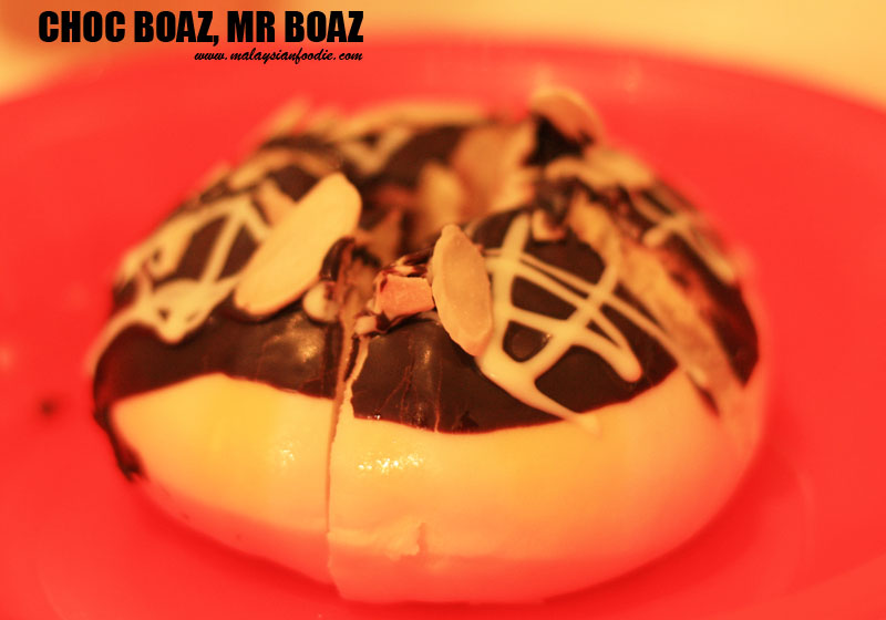 Mr Boaz time and in Pavillion this time to have a taste of Mr Boaz. This time i am going for a something special baoz which is the chocolate boaz. The chocolate boaz is what i ordered for my this time visit and for my this time visit, i ordered the usual promo which is one boaz and a green tea for the price of RM 3.80. The price is available for tea time special