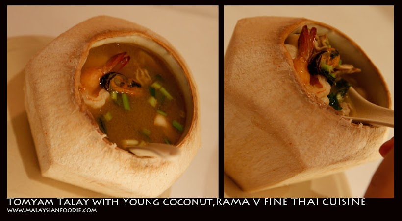 As for food, we ordered 3 dishes. We are not aware of the dish which is served such a big plate. Hmm.. We had made an order of Tomyam Talay with Young Coconut. The spicy sour tomyam which the soup is clear is making our lips burning hot. The superb and fresh ingridients like seafood is simply delighting and thumbs up. he pure thai cooking is really amazed my taste buds.