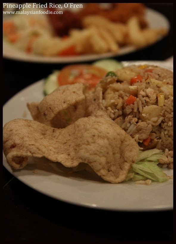 Pineapple Fried Rice- The fried rice which is fried together with chunky chicken meat and pineapple. There are some prawns in it.