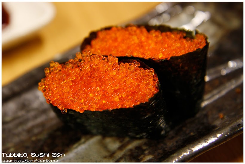 Tabbiko: The flying fish roe wrapped with seaweeds.