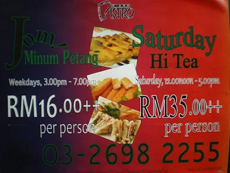 SATURDAY HI TEA AT PIANO BISTRO, THE PLAZA HOTEL KL May 15, 2013 by StrawberrY Gal Come and join us for the Jom Minum Petang or Saturday Hitea. Location The Plaza Hotel Kuala Lumpur Jalan Raja Laut, 50350 Kuala Lumpur, Malaysia
