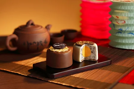Encased in chocolate coating and built on a crispy praline base, Häagen-Dazs ice creams Mooncakes have a harmonious blend of textures that makes it the perfect after-dinner treat. These handcrafted treasures house a refreshing mango sorbet center that acts as the ‘yolk’, embedded in a choice of 4 Häagen-Dazs ice cream flavors: Chocolate, Strawberry, Macadamia Nut and Cookies and Vanilla Cream.