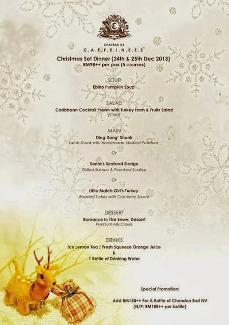Come to Caffeinees and enjoy Christmas with a special dinner set.