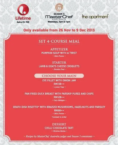 MasterChef Australia Season 5 set menu is now available exclusively at The Apartment!