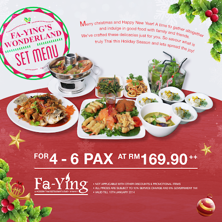 CHRISTMAS PROMOTION AT FA YING THAI RESTAURANT, PARADIGM MALL December 9, 2013 by StrawberrY Gal Address: Fa Ying Thai Restaurant The Boulevard, Paradigm Mall Kelana Jaya, Petaling Jaya Selangor GPS: 3.108806, 101.59564 Tel: 03-7451 2933