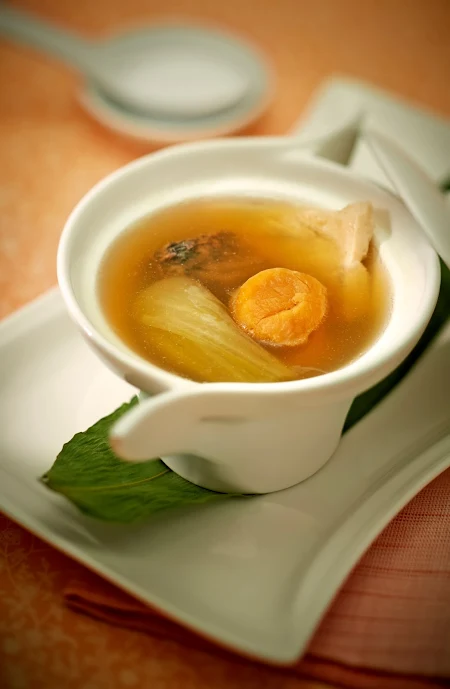 Crispy Garlic served with Five Spice Salt, Pan-Fried Jumbo Tiger Prawn with Chef’s Signature Sauce, Hong Kong-Style Steamed Grouper with Spring Onions, Coriander topped Superior Sauce and Double Boiled Chicken with Whole Abalone, Dried Scallop, Bamboo Pith and Vegetables. A must try dessert from the set menu is the Chilled Pumpkin Puree with Sago Cream topped with Vanilla Ice Cream and Pistachio Nuts.