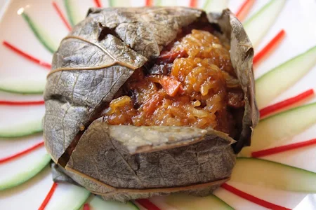 Glutinous Rice in Lotus Leaf with Anchovies