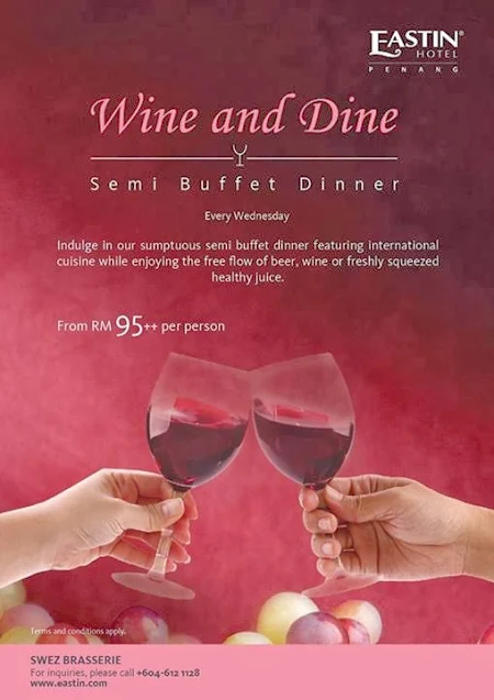 WINE AND DINE SEMI BUFFET AT EASTIN HOTEL PENANG January 8, 2014 by StrawberrY Gal Location 1,Solok Bayan Indah, Queensbay, Bayan Lepas, 11900 Penang, Malaysia Phone 04-612 1111 Email [email protected] Website http://www.eastin.com