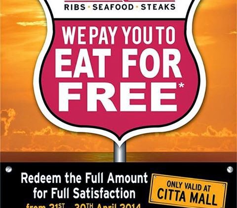 Get RM10 for every RM10 spent at Tony Roma's Citta Mall from 21 April 2014 - 30 April 2014 Dine-in only. Terms and conditions apply. Visit their restaurant or website for more details. Call 03-7859 9068 for enquiries. … [Read more...] about TIME TO EAT FOR FREE IN TONY ROMA CITTA MALL