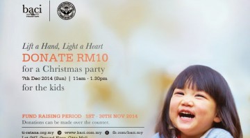 In conjunction with Yuletide, Baci Italian Café, a home-grown brand by Chaswood Resources Ltd, is launching a special Christmas campaign to fund a buffet spread for the underprivileged children of Ti Ratana Welfare Society at their outlet in Citta Mall, Ara Damansara. From 1st till 30th November, patrons will be encouraged to contribute a minimum of RM10 that goes towards … [Read more...] about BACI SPREADS THE FESTIVE SPIRIT WITH THE LAUNCH OF A SPECIAL CHRISTMAS CAMPAIGN FOR THE UNDERPRIVILEGED