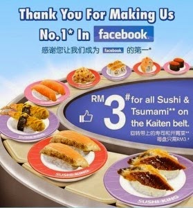 Thank you for making Sushi King the number 1 in Facebook! It’s been an incredible journey to achieve this milestone and we really appreciate all the support they received from all of you over the last nineteen years. We sincerely thank you for your support and now we’re giving back with the best promotion. Enjoy RM3 for all Sushi & Tsumami on the Kaiten belt during the … [Read more...] about SUSHI KING RM 3 PROMOTION FOR ALL SUSHI AND TSUMAMI ON KAITEN BELT