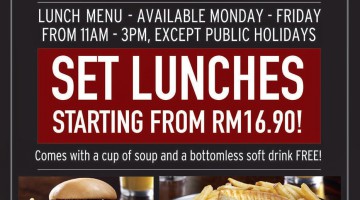 Tony Roma Set Lunches starting from RM 16.90. at in comes with a cup of soup and a bottomless soft drinks FREE … [Read more...] about TONY ROMA’S LUNCH PROMOTION