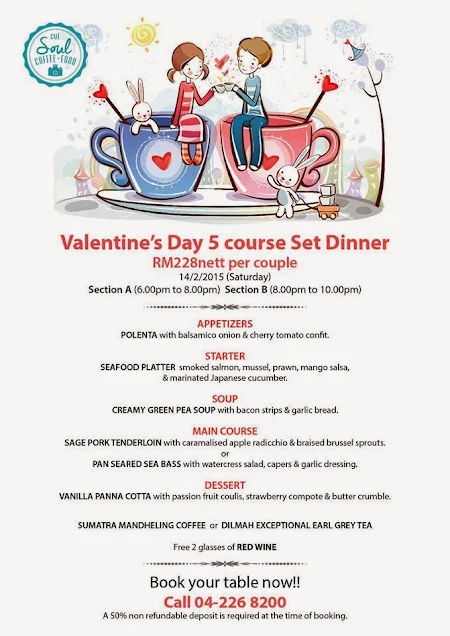 VALENTINE DAY PROMOTION AT SOUL CAFE, JALAN KEK CHUAN January 30, 2015 by StrawberrY Gal Address: Soul Cafe 12, Jalan Kek Chuan George Town, Malaysia 04-226 8200