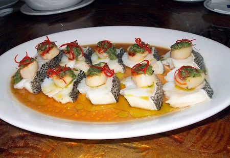 Some of the highlights include chef’s own creation steamed pacific cod fish with pan seared sea scallop topped with green ginger sauce & wood fish. The delicate and silky texture of the cod compliments the plump and supple scallops. Another chef creations is the wok-fried lamb loin coated aromatic coffee sauce topped with orange zest shavings. The meat chosen is the tenderest part of the loin (no tenderizer or baking soda added!) which is bathed in a sauce made of coffee and sugar slow cooked until caramelized. Next is the Braised Seafood Soup that consists of fish lips, sea cucumber, dried scallops, fish maw and crab meat, all of which blends well to bring out the robust flavors of seafood that is smooth in consistency. Another crowd favorite if the giant king prawns which is wok fried until skin is crispy. The steamed aromatic buttered rice will fill up any tummy that’s still hungry for more. Wrapped in lotus leaf the savoury rice sprinkled with waxed duck breast meat and cubes of chicken “char siu”. Simply mouth-watering and perfect for any friends or clients who would like to opt for pork-free menu! Lastly finish off scrumptious deep fried crispy “nian kao”, a typical Chinese dessert which batter is Chef Jerry’s homemade recipe, skilfully fried in a way that is not oily but moreish!