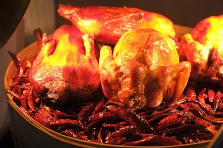 As for the main dish we have the Roasted Peking Duck, Fried Prawn Golden Egg with York Sauce, Baked Whole Salmon Chili Mayo and many other interesting dishes. The Roasted Peking Duck is a whole duck marinated with spice powder and then roasted to perfection. The slices of the roasted duck along with cucumber, leek, spring onions and a dash of Hosin sauce are then rolled with the egg skin for a complete oriental dish.