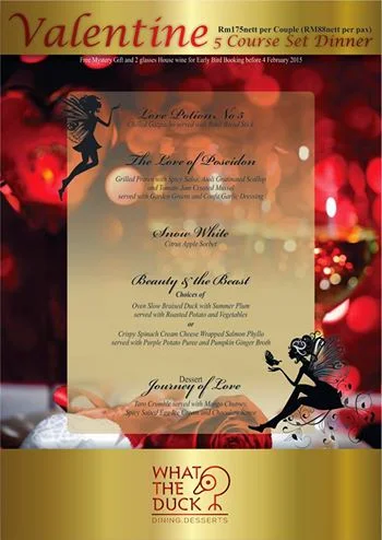 VALENTINE PROMOTION @ WHAT THE DUCK February 3, 2015 by StrawberrY Gal What The Duck Restaurant Address: 40, Jalan Nagor, 10050 Georgetown, Pulau Pinang Phone:04-227 8840