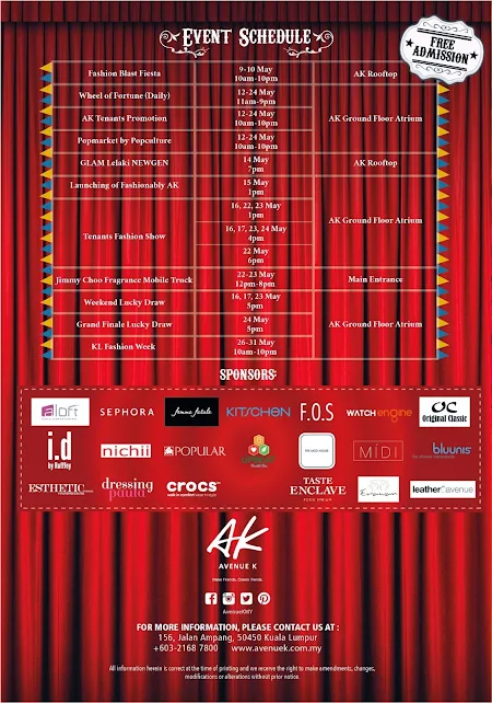 Visit www.avenuek.com.my and  www.facebook.com/AveueKMY or call Avenue K’s information counter at 03 2168 7800 for more information on AK’s current and upcoming events and offers.