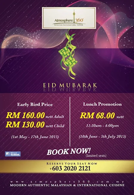 Early Bird Price at RM160 nett per adult and RM130 nett per child from 1st May until 17th June 2015