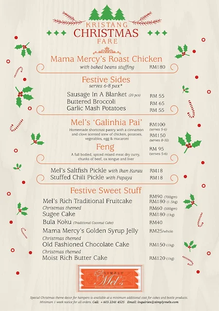 KRISTANG CHRISTMAS FARE @ SIMPLY MEL’S November 28, 2015 by StrawberrY Gal The season of Christmas is here! Simply Mel’s presents our Traditional Kristang Christmas Fare. Get your orders in now! For inquiries call Mel 0124020500 or email [email protected]