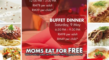 Saffron Brasserie (Ancasa Hotel & Spa Kuala Lumpur) is offering their Mother's Day Hi-Tea from 12pm until 4pm at RM40 nett per adult and RM20 nett per child (4 - 12 years old). For every 5 adult diners, the 6th person eats for FREE. Terms and conditions apply. Call 03-2026 6060 ext 7703 for reservations. … [Read more...] about MOTHER’S DAY PROMOTION AT SAFFRON BRASSERIE, ANCASA HOTEL