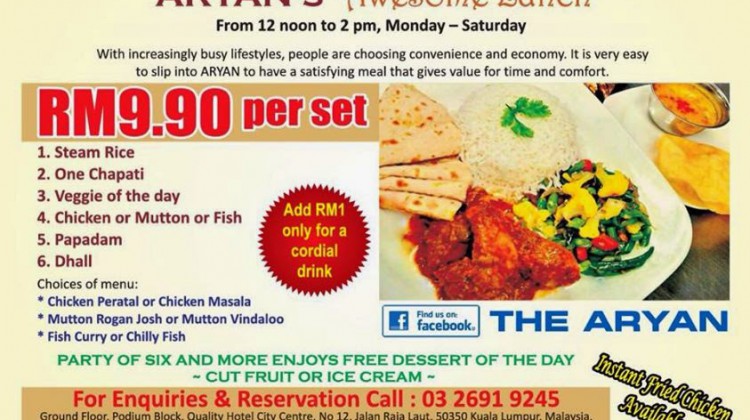 Ground Floor, Podium Block, Quality Hotel City Centre Kuala Lumpur, No. 12 Jalan Raja Laut Kuala Lumpur, Malaysia 03-2691 9245 … [Read more...] about THE ARYAN’S AWESOME LUNCH