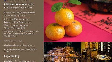 Have you made your plans yet? Come celebrate the Chinese New Year with Casa del Rio's dinner buffets! FREE "Yee Sang" served at your table! Address: Casa Del Rio. Melaka 88 Jalan Kota Laksamana Melaka 06-289 6888 … [Read more...] about CHINESE NEW PROMOTION @ CASA DEL RIO , MELAKA