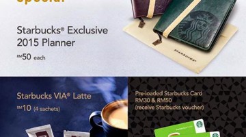 Good news for all students: Get the Starbucks Exclusive Planner 2015 for only RM50 from 27-31 January 2015. No purchase needed! Starbucks Coffee Students Special: Starbucks Planner 2015 for only RM50 4 sachets of Starbucks VIA Latter for only RM10 Purchase pre-loaded Starbucks Card RM30 and RM50 & get FREE Starbucks Voucher * Students ID must be … [Read more...] about STARBUCKS STUDENT SPECIAL