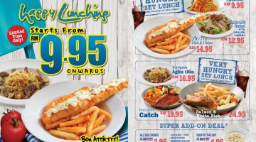 Fish & Co has introduced their new Happy Lunching Menu from RM9.95 onwards. All set lunches come with a beverage of your choice (Iced Tea, Sprite or Coke). Available on weekdays (except eve of public holiday and public holiday) from 11.30am until 5.30pm at these selected restaurants: - Pavilion KL from 14th January 2015 - The Mines from 19th January 2015 - … [Read more...] about HAPPY LUNCHING @ FISH&CO
