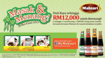 In conjunction with the holy month of Ramadan, Mahsuri, the leading brand in fine sauces and condiments brings good news to all budding home chefs in its latest campaign, the ‘Masak dan Menang’ contest that will run from 28th May to 8th July 2015. As its name suggests, the contest invites home cooks to share a snapshot of their delicious Buka Puasa dish creations whipped … [Read more...] about MAHSURI’S MASAK DAN MENANG CONTEST INVITES HOME COOKS TO UNLEASH THEIR INNER CHEFS