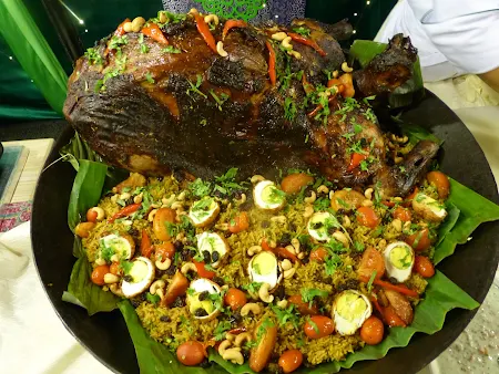 Look forward to the mout watering dishes from the chocie of whole lamb bbq with nasi briyani, sup tulang kedah roto bengal,sotong bermadu peranakan, sambal udang serai bersantan, kepak ayam perap manisan tebu, sambal tempe kacang dan soo hoon, gulai nangka tulang rusuk kambing and more.