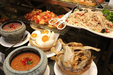 Be sure not to miss our action station serving choices of Ikan Bakar and Kambing Golek with Briyani Pak Arab. Other fares such as Satay Kajang, Ayam Percik, Gulai Kawah and Bubur Lambuk are also served for those who seek the more traditional fare.