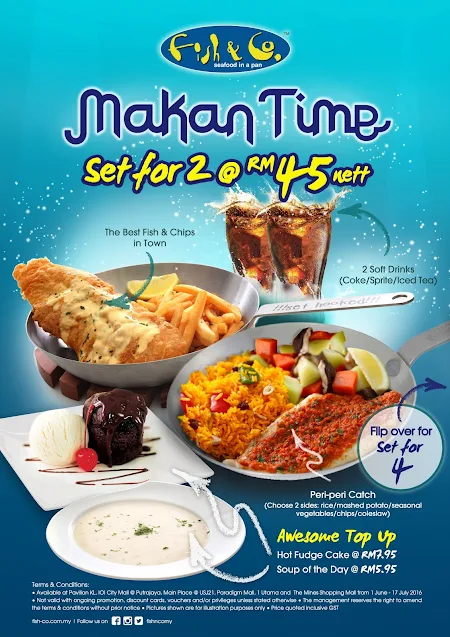 Makan Time Set for 4 @ RM 109 nett – The Best Fish & Chips in Town – Peri-Peri Catch – Fry-Kings Platter – 4 Soft Drinks