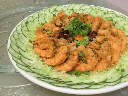 Wok Fried Sea Prawn Coated with Crumbs and Golden Garlic