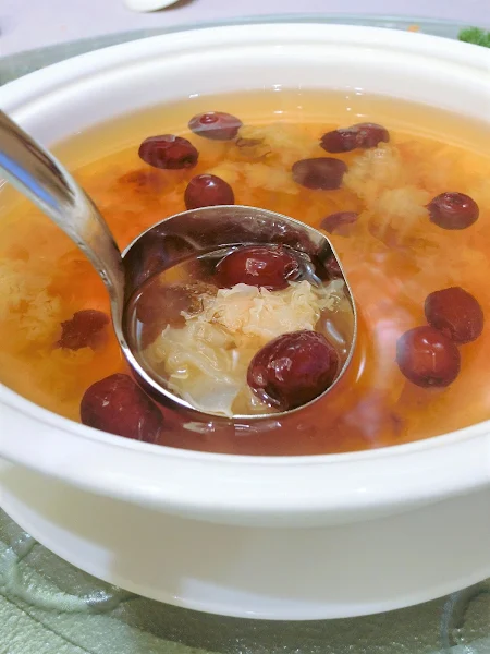 Dried Pear Soup with Red Date, Snow Fungus, Snow Lotus Seed and Peach Gum
