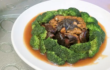Braised Dried Oyster, Flower Mushroom and Sea Moss with Superior Oyster Sauce