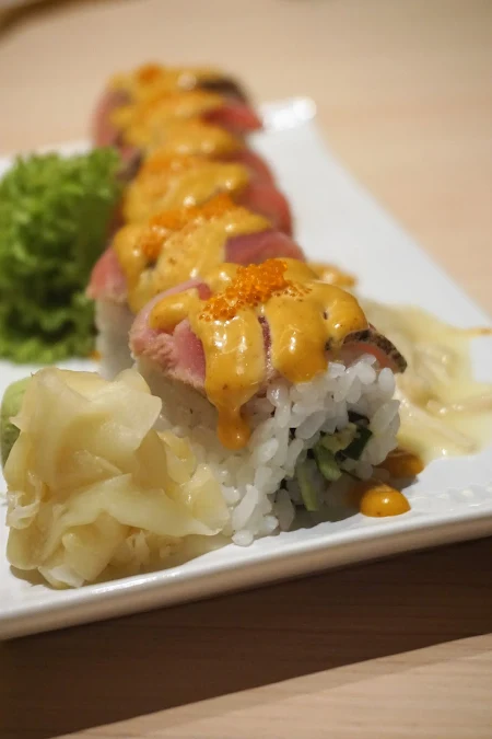 Grilled Tuna Sushi Roll with Spicy Tom Yam Sauce RM28.90