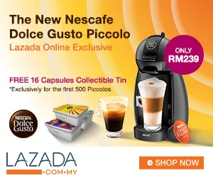 Interested? They are launched at affordable price at RM 239 only. And this model (Nescafe Gusto Piccolo Coffee Machine) is an online exclusive model on Lazada from Nescafe Dolce Gusto. Pre-order now to get more great deals where now you can have the coffee machine together with the limited edition boxes (3 random designs with 16 capsules in it)*