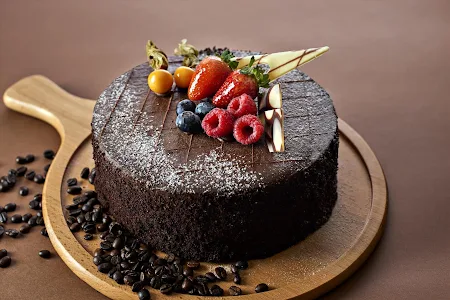 This crowd pleasing dessert consists of chocolate moist sponge and butter cream. Divided into three layers with a layer of chocolate sponge in between of silky smooth butter cream as filling. Next, coat the cake with chocolate ganache and leave it to cool for a while. Top it with fresh berries and chocolate decoration. Spread some chocolate moist sponge crumble on the side of the cake for the finale.