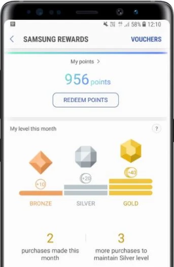 Samsung Rewards has loyalty tiers (Gold, Silver and Bronze) with point multipliers enabling users to earn double or quadruple points, depending on how often a user use the service each month. Users can level up across the tiers after meeting a target number of transactions; and with each level up achieved in Samsung Rewards, users get to earn more points per transaction, reaping additional rewards in return.