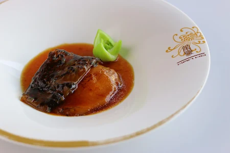 Braised sliced abalone with garoupa skin (HK$1,088 per person) is all about its rarity and exquisiteness. Made with Japanese Amidori dried abalones and dried whole garoupa skin, the dish is packed with aromas, textures and flavours. A 50-60 kg garoupa can only produce skin of around 4kg, which shows how unique the item is.