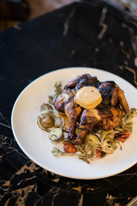 Enjoy the Spatchcock where they are marinated with ancho chili, orange juice, chipotle powder, jalapeno powder, smoked paprika and served with the baby potatoes and cherry tomatoes. The chicken comes awesomely delicious with the tender and juicy textures.