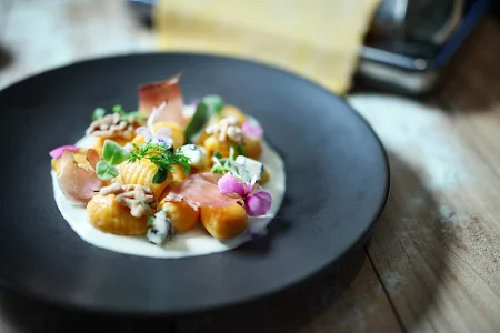 Pumpkin Gnocchi with Gorgonzola Cheese, Speck Ham and Walnuts (HK$318) is a beloved Italian pasta that delights the senses with its combination of indulgent ham and cheese, paired with the chewy texture of gnocchi flavoured with pumpkin.